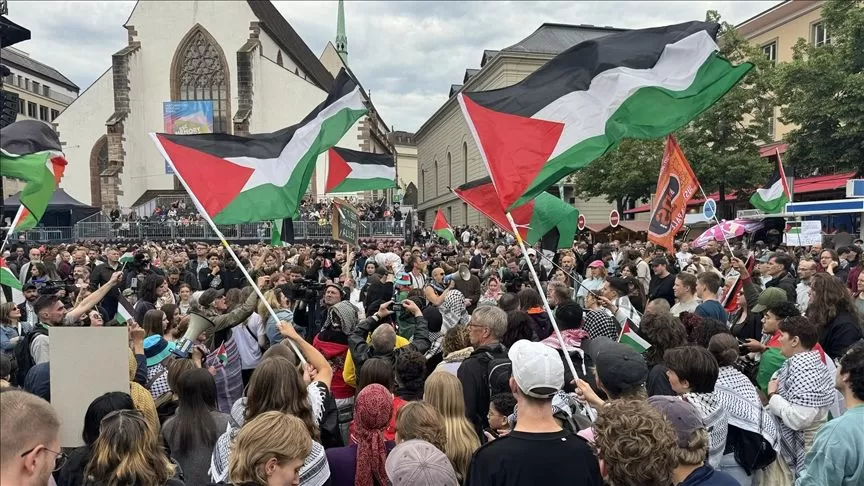 شهدت مدينة بازل السويسرية، تظاهرة حاشدة احتجاجا على مشاركة إسرائيل في مسابقة "يوروفيجن" للأغاني الأوروبية 2025، بسبب الإبادة الجماعية التي ترتكبها في قطاع غزة.