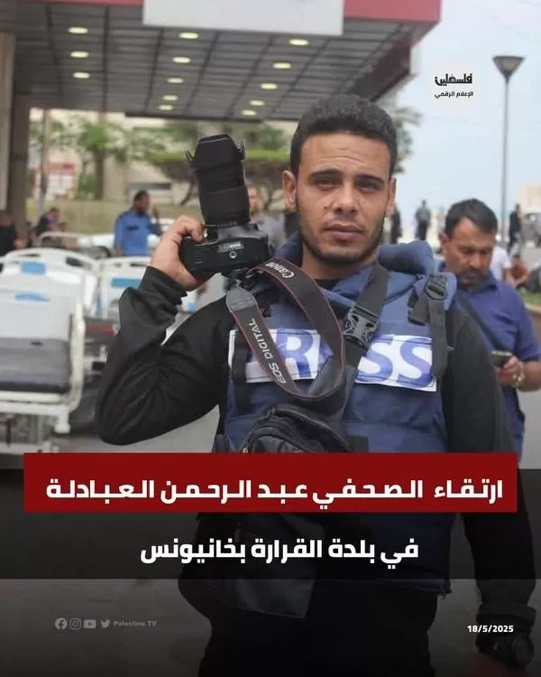 وفي بلدة القرارة جنوبا، وبعد يومين من فقدان الاتصال به، استشهد الصحفي عبد الرحمن توفيق العبادلة.