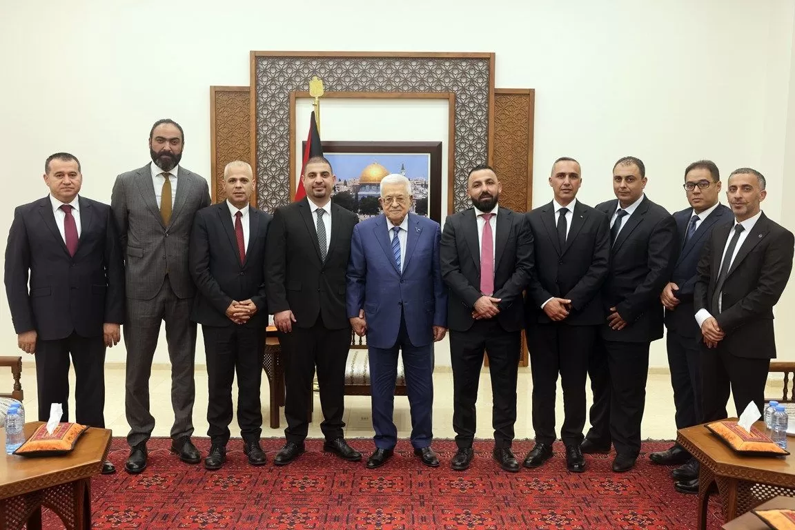 استقبل رئيس دولة فلسطين محمود عباس، بمقر الرئاسة في مدينة رام الله، مساء اليوم الثلاثاء، وفد مجلس نقابة المحامين الفلسطينيين برئاسة النقيب المحامي فادي عباس.