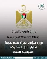 - أصدرت وزارة شؤون المرأة تقريراً تحليلياً بعنوان "المشاركة السياسية للنساء عشية الثامن من آذار 2025–2026"، وذلك في إطار إحياء يوم المرأة العالمي، وضمن سلسلة تقارير الرصد والتوثيق التي تصدرها الوزارة، بهدف تسليط الضوء على واقع تمثيل المرأة الفلسطينية في الحياة السياسية ومواقع صنع القرار.