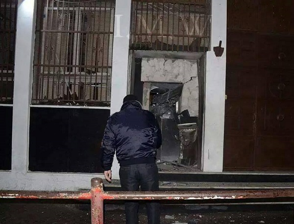 - في الصورة تفجير أحد الصرافات الآلية في قطاع غزة