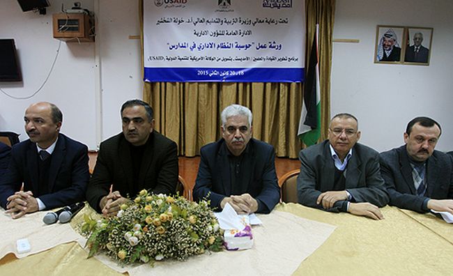 قرابة 80 مدير مدرسة وسكرتيرا وموظفي الشؤون الإدارية من مديريات جنوب الخليل ورام الله والبيرة وجنين، اجتمعوا اليوم الأحد، في المعهد الوطني للتدريب التربوي في مدينة البيرة، للاطلاع على مشروع حوسبة النظام الإداري في المدارس الحكومية، وآلية التعامل معه، كخطوة أولى في بناء قدراتهم للتعامل مع البرنامج الخاص بإدخال المعلومات الخاصة بالموظفين ونقلها إلى أقسام الشؤون الإدارية في المديريات بشكل الكتروني ومن ثم إلى الإدارة العامة للشؤون الإدارية في الوزارة لأخذ الموافقات اللازمة وتنفيذ المعاملات الخاصة بهم.