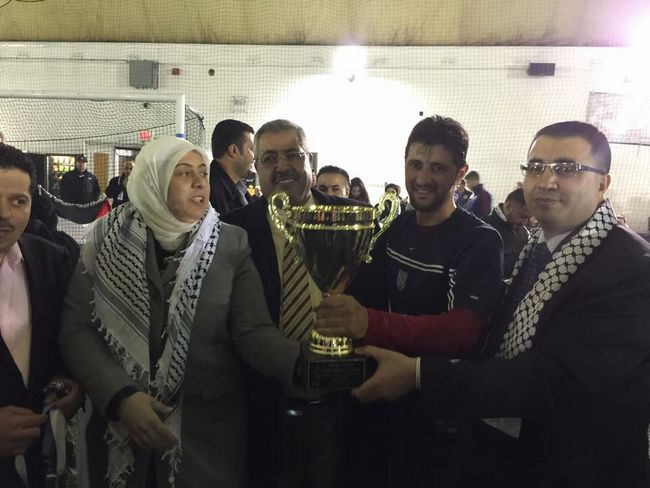 وقد قامت عطوفة المحافظ " ليلى غنام" والمستشار نائب السفير الفلسطيني " عمر الفقية " ورئيسي بلدية بيتونيا وترمسعيا السيد " ربحي دوله" والسيد" ربحي ابو الهموم" بتسليم الكؤوس والميداليات للفريق وقد قالت د. غنام للفريق وللجمهور انني انقل لكم تحيات السيد الرئيس محمود عباس" ابو مازن " والقيادة الفلسطينية، وبما ان هذه المبارة هي ودية والفوز فيها هو المشاركة ووجودنا بينكم فإننا نعبر عن فخرنا واعتزازنا بكم ونتمنى للاتحاد الفلسطيني الامريكي مستقبل رياضي، و اجتماعي،وسياسي، وان يكون المظلة الجامعة للكل الفلسطيني في الشتات. ولقاؤنا قريب ان شاءالله في القدس عاصمة لدولتنا الفلسطينية وشكرا لكم وغدا نراكم في المهرجان الرئيسي لانطلاقة الثورة الفلسطينية.