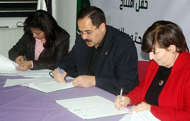 ووقع الاتفاقية عميد كلية فلسطين التقنية- رام الله للبنات، ديمة الناظر، والرئيس التنفيذي لمؤسسة شركاء في التنمية، صبري صيدم، ومدير عام مؤسسة مجموعة الاتصالات للتنمية المجتمعية، سماح حمد.