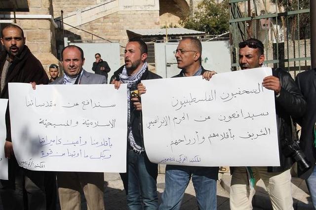واشار ابو حسين انه وبعد محاولات عديدة بالتدخل لاقناع الاحتلال الاسرائيلي بالعدول عن قراره الخاص بمنع الصحفيين من دخول الحرم الابراهيمي من قبل الارتباط الفلسطيني ومكتب محافظ الخليل نظم الصحفييون اعتصاما احتجاجيا على مدخل الحرم للتعبير عن رفضهم لاجراءات الاحتلال الاسرائيلي العنصرية بحق اهالي المدينة وزوارها الفلسطينين والعرب المسلمين .