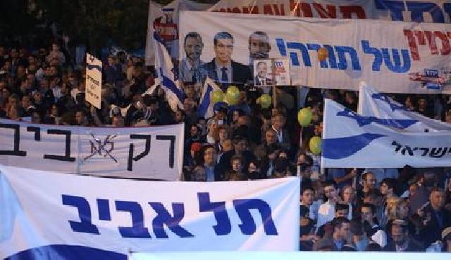 تجمع عشرات الآلاف من اليمينيين الإسرائيليين في تل أبيب اليوم الاحد في مسيرة دعما لرئيس الوزراء الإسرائيلي بنيامين نتنياهو قبل يومين من الانتخابات البرلمانية على ما أفادت وكالة الأنباء الألمانية.