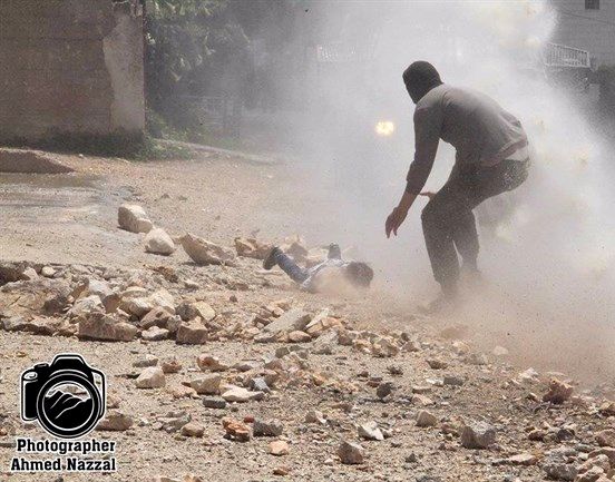 محمد لم تسعفه بنية جسمه النحيل في الصمود أمام ضغط مياه كيماوية ذات رائحة نتنة فوقع على الأرض وتهشم وجهه ولكنه وقف مرة ثانية ليتمكن احد الشبان من التقاطه من بين براثن المياه العادمة.