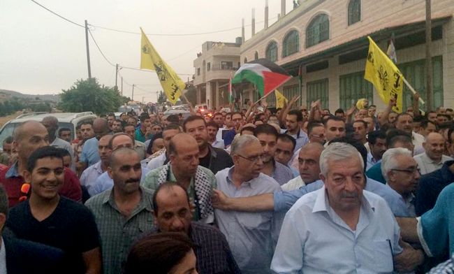 توافد الآلاف من أبناء حركة 'فتح' إلى قرية دوما جنوب نابلس، مساء اليوم الأحد، في مسيرة حاشدة، إعلانا عن تضامنهم مع عائلة دوابشة التي أحرقها مستوطنون فجر الجمعة، ما أدى لاستشهاد الطفل علي وإصابة بقية أفراد عائلته بجروح خطيرة.