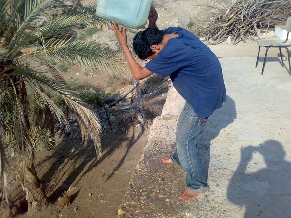 وقد زاد استهلاك عائلة فقها في هذه الايام الحارة ثلاثة اضعاف الايام السابقة، ويوضح فقها: "الاطفال لا يتوقفون عن رش المياه على أجسادهم، ونحن كذلك، وتشرب الاغنام كميات مياه أكبر أيضا".