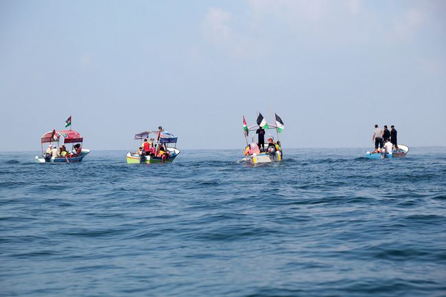 جاء ذلك خلال وقفة احتجاجية نظمها اطفال مركز نوار التربوي التابع لجمعية الثقافة والفكر الحر ،على متن 13 قارب سياحي في عرض البحر ، اطلقوا خلالها البلالين ورفعوا اليافطات المحملة بالعديد من الشعارات المطالبة بحقوقهم المغتصبة وعلى رأسها حق العيش ببيئة امنة ،كما رفعوا العديد من الشعارات والصور التي توضح حجم الانتهاكات والجرائم التي ارتكبتها جيش الاحتلال ومستوطنيه بحقهم وخاصة في الحروب الثلاث الاخيرة التي شنها على القطاع واستهدفتهم بشكل مباشر، كما رفعوا يافطات وشعارات طالبت المجتمع الدولي بضرورة توفير الحماية لأطفال فلسطين وفق الاتفاقيات الدولية ،ومحاكمة قادة الاحتلال على جرائمهم التي اقترفوها بحق الاطفال.