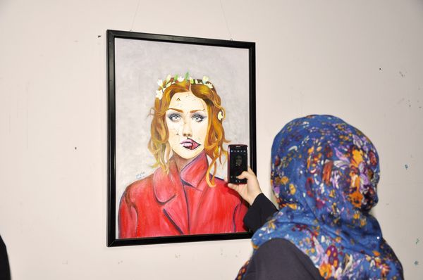 في هذا المعرض ترى أن كل فنان تناول قصة وجانبا من جوانب التمييز الذي تتعرض له المرأة، فالفنان حازم الزمر جسد في لوحته الفنتازية "القيود الاجتماعية والأسرية التي ما زالت تحدّ من حرية المرأة وتجعلها أسيرة الجلوس في البيت، ولا تبعد كثيرا لوحة الفنانة بشرى عابد التي صورت المرأة وكأنها عروسة في مسرح عرائس يحركها الرجل ويكبلها المجتمع.