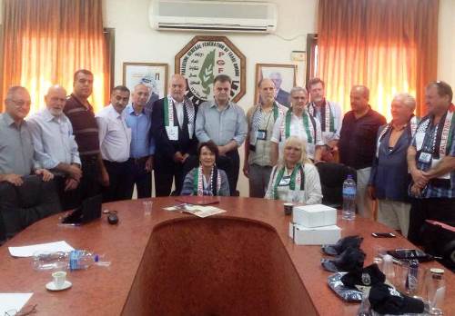 والتقى الوفد بالأمين العام لاتحاد نقابات عمال فلسطين شاهر سعد، وأعضاء الأمانة العامة واللجنة التنفيذية ونشطاء وناشطات الاتحاد الى جانب عشرات العمال والعاملات الفلسطينيين، ووكيل وزارة العمل الفلسطينية ناصر قطامي، واستمع منهم الى شرح واف ومستفيض عن الأوضاع السياسية والاقتصادية والاجتماعية الفلسطينية الراهنة في ظل استمرار الاحتلال الإسرائيلي وممارساته العدوانية اليومية، وخاصة ما يتعرض له العمال والعاملات الفلسطينيون العاملون في سوق العمل الاسرائيلي من اعتداءات يومية وانتهاكات لحقوقهم، الى جانب صورة عن المهمات والمسؤوليات التي يقوم بها الاتحاد في تبني قضايا العمال والعاملات الفلسطينيين اليومية والدفاع عنها، والدور الذي تقوم به وزارة العمل الفلسطينية .