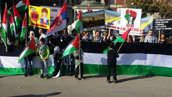 ورفع المحتشدون في مركز مدينة بلغراد عاصمة دولة صربيا الأعلام الفلسطينية واللافتات التي تدعو الى وقف ممارسات الإحتلال بحق شعبنا الأعزل إلا من الإرادة، وأكدوا بهتافاتهم ضرورة انصاف شعبنا وحماية الطفولة التي ترزح بين مخالب آخر احتلال عرفته البشرية، مؤكدين أن الوقوف إلى جانب شعبنا هو واجب على كل من يحترم الحقوق الإنسانية ويلتزم بالمواثيق الدولية.