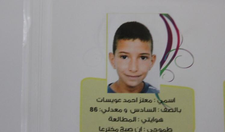 واستشهد الطفل عويسات برصاص قوات الاحتلال الإسرائيلي، في السابع عشر من تشرين الأول الماضي، بذريعة محاولته تنفيذ عملية طعن في مستوطنة 'أرمونا نتسيف' المقامة على أراضي جبل المكبر.