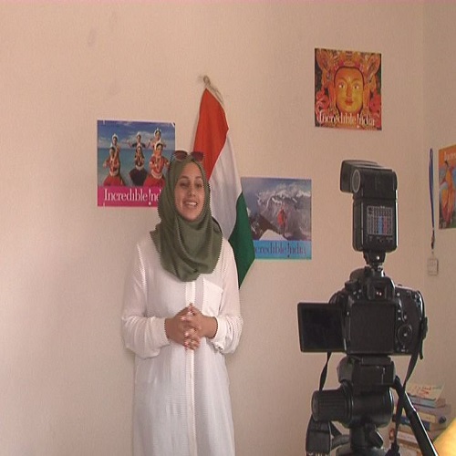 في غرفتها وأمام علم للهند معلق على الحائط، وبجواره صورة لتاج محل وأخرى لفتيات هنديات يرتدين الساري وثالثة لتمثال بوذا، عدلت آية هيئتها وتموضعت أمام كاميرا فيديو، ضغطت زر التسجيل ورسمت ابتسامة على محياها، وبدأت بتسجيل درس جديد من دروس اللغة الهندية، التي تنشرها على موقع 'يوتيوب'، لتنقل تجربتها لمن يرغب بتعلم اللغة.