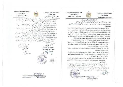 وكان الرئيس محمود عباس اصدر المرسوم رقم (7) من العام 2006 في 11-4-2006 والذي جاء به منع قبول اي معاملة بشأن تغيير او تعديل قيود الاراضي المملوكة للحكومة او الاشخاص الاعتبارية العامة او الاوقاف المسجلة في سجلات دافعي ضريبة الاملاك في القرى والمدن باسم رئيس السلطة الوطنية الفلسطينية او السلطة الوطنية الفلسطينية أو أي أراضٍ أخرى مسجلة باسم الهيئات او السلطات او المؤسسات العامة والوزارات الحكومية او الأوقاف.