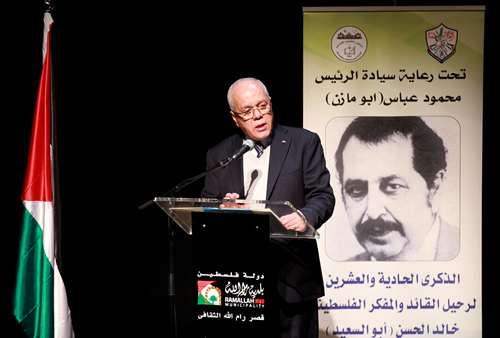 - تحت رعاية رئيس دولة فلسطين محمود عباس، أحيت حركة التحرير الوطني 'فتح'، وملتقى المثقفين المقدسي، اليوم الثلاثاء، الذكرى الـ21 لرحيل القائد والمفكر خالد الحسن 'أبو السعيد'، في قصر رام الله الثقافي.