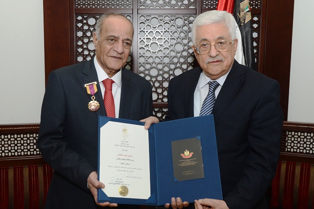 ومنح الرئيس، الروائي عسقلاني، وسام الثقافة والعلوم والفنون، تقديرا لدوره الفاعل في تأسيس اتحاد الكتاب في فلسطين، وإسهاماته القيمة في إثراء الثقافة الفلسطينية.