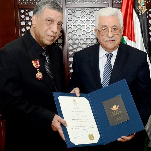 قلد رئيس دولة فلسطين محمود عباس، الفنان التشكيلي د.عبد الرحمن المزين، امين عام اتحاد الفنانين التشكيليين الفلسطينيين، وسام الثقافة والعلوم والفنون "مستوى الابداع".