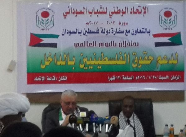 افتتحت سفارة دولة فلسطين في جمهورية السودان، بالتعاون مع الاتحاد الوطني للشباب السوداني، اليوم السبت، ندوة سياسية لمناسبة اليوم العالمي لدعم حقوق الفلسطينيين في أراضي عام 1948م، وذلك في مقر الاتحاد بالخرطوم، بحضور سفير دولة فلسطين سمير عبد الجبار، والأمين العام للاتحاد وقيادته وكوادره، والجالية الفلسطينية، وشخصيات فكرية وحزبية ونقابية سودانية.
