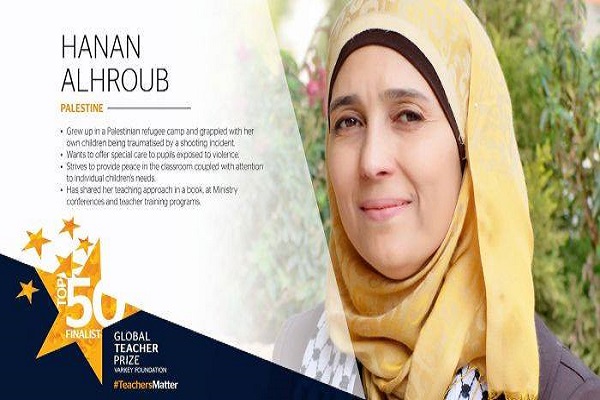 اعتبرت حركة التحرير الوطني الفلسطيني (فتح) فوز المعلمة حنان الحروب بجائزة أفضل معلم في العالم، انتصارا لفلسطين والقيم الحضارية المعرفية والتربوية الناظمة لحياة وتطلعات وآمال الشعب الفلسطيني.