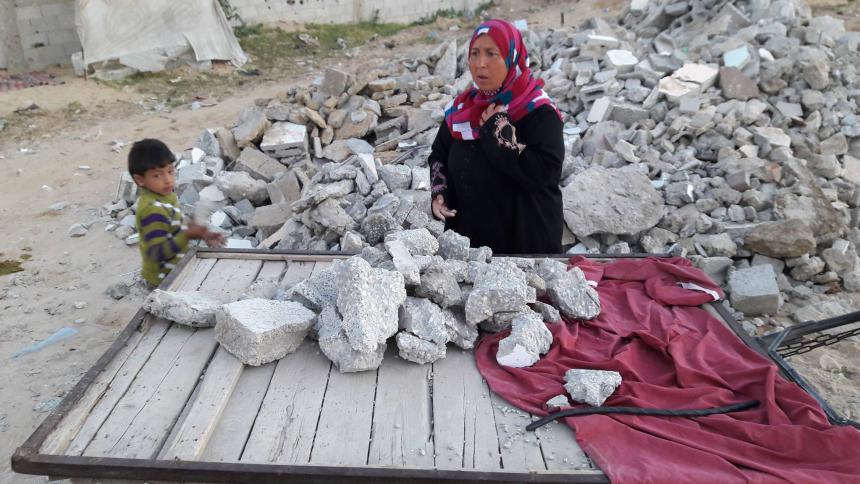 مع إشراقة كلِّ صباح جديد، تستعد السيّدة الغزيّة "جهاد أبو محسن" أو "جيهان" كما تحب أن يطلق عليها، للخروج مع طفلها الصغير "كريم" ذو الأعوام الخمسة، للبحث عن مزيد من ركام المنازل المدمرة في الطرق ومكبات النفيات لجمعها وبيعها.