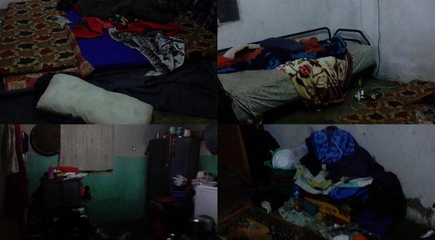 ويفتقر المنزل (الذي تعيش فيه الاسرة بشكل مؤقت) إلى الحمام والمطبخ ، فضلا عن الادوات الصحية.