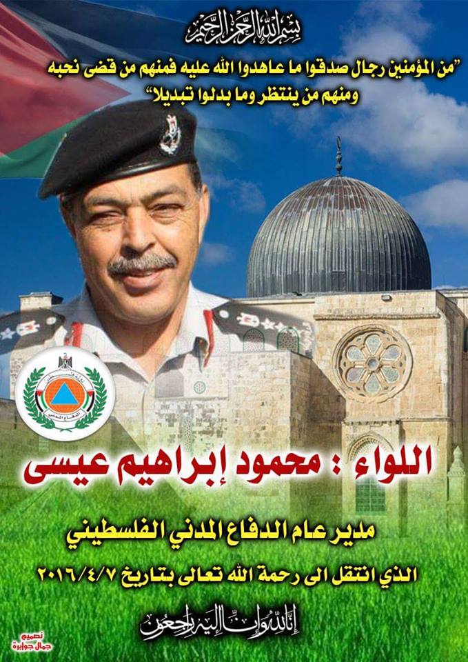نعت حركة التحرير الوطني الفلسطيني "فتح"، الى جماهير الشعب الفلسطيني المناضل القائد اللواء محمود عيسى عضو المجلس الثوري مدير عام الدفاع المدني.