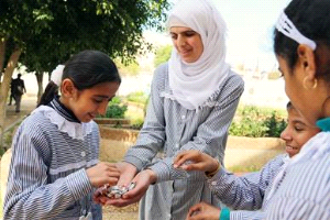 فازت الطالبة ياسمين النجار (13 عاما) في مسابقة طوعية تعليمية نظمتها "الأونروا" حول حقوق الانسان في جميع مدارس الأونروا الابتدائية في مدينة غزة.