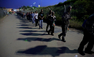 يعمل إياد منذ 16 عاما وراء الجدار الفاصل، لكنه وبعد أن شاهد الطابور الذي يطول ولا يقصر، قال: "قد أجوع ولكنني أقدس هذا اليوم. أنا عائد إلى بيتي".