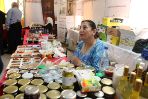 وتفتخر بسمة سعادة، من قرية عابود في حافظة رام الله، بعرض منتجاتها من مربى الباذنجان بالمكسرات، والبرتقال، والتين بالجوز، وعصائر الخشخاش، والليمون، والمكدوس بالشطة والمكسرات، بالإضافة الى زيت الزيتون وانواع مكابيس الزيتون. واشارت الى ان جميع هذه المنتجات من حديقة منزلها، مؤكدة ان منتجاتها خالية من المواد الحافظة والاصباغ الصناعية، وانها لاقت استحسان المتجولين في المعرض.