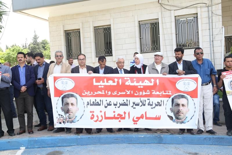 من جهته، قال رئيس الهيئة العليا لمتابعة شؤون الأسرى أمين شومان، إن هذا الاعتصام يهدف الى إيصال رسالة لكافة المؤسسات الحقوقية الدولية من أجل التدخل لإنقاذ حياة أسرانا المضربين عن الطعام. وأوضح أن الاحتلال لم يفتح أي باب للحوار بخصوص الأسير الجنازرة، وهذا يدل على أن هناك إصرار من قبل ادارة مصلحة السجون والحكومة الإسرائيلية على أن يرتقي بعض الأسرى شهداء، إضافة إلى عدم الاستجابة لمطالبهم بتحديد سقف زمني للإفراج عنهم من الاعتقال الإداري. وطالب شومان المؤسسات الدولية بتحمل مسؤولياتها تجاه حياة الأسرى المهددة بالموت داخل السجون، مشددًا على ضرورة التحرك الفوري من أجل لجم سياسة الحكومة الإسرائيلية الانتقامية والممارسات المخالفة للقانون الدولي.