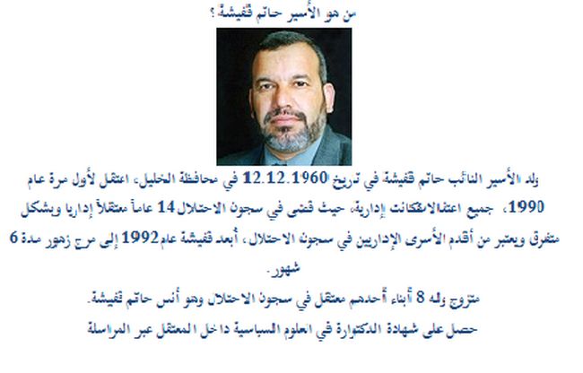 يذكر أن النائب قفيشة معتقل منذ 24/1/2016، وقد أمضى نحو عشر سنوات في سجون الاحتلال.