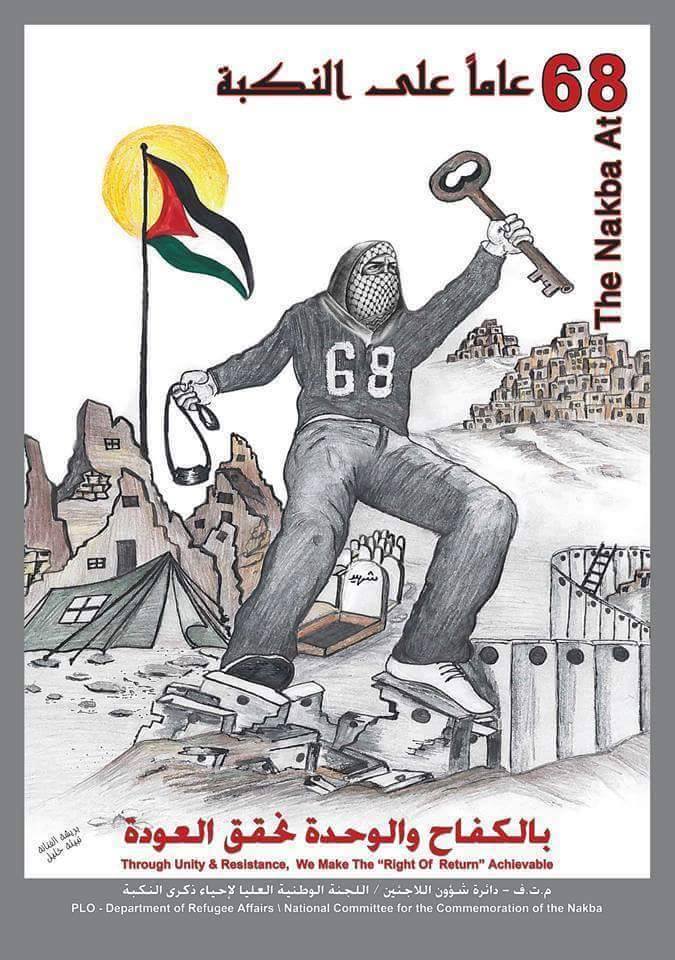 وأكد المجلس الوطني الفلسطيني في بيان صدر عنه اليوم بمناسبة الذكرى 68 لنكبة الشعب الفلسطيني انه مهما طال الزمن فلن يتنازل شعبنا وأجياله القادمة عن حقه في العودة لأنه حق مقدس وثابت وغير قابل للتصرف لا يمكن لأحد أن يتنازل عنه أو يساوم عليه، ولن يكون هناك سلام ولا استقرار ولا أمن في المنطقة إلا بعودة اللاجئين إلى ديارهم.