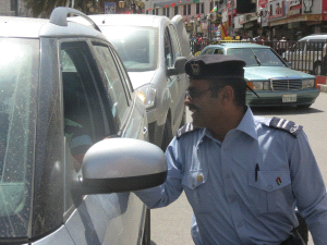 في ميدان الشهداء وسط مدينة نابلس، كان هناك اليوم ما يلفت نظر المارة، فعلى كرسيه المتحرك، مرتديا اللباس الشرطي الكامل، استطاع المقعد رائد الحويطي (44 عاما) أن يقوم بمهمة شرطة المرور وتنظيم حركة السير ليوم واحد.