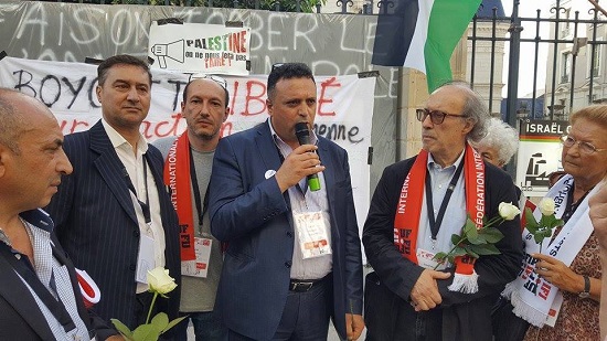 كما نطالب الاتحاد الدولي ونقابات العالم مواصلة دعمنا في حقنا في حرية الحركة والتنقل داخل فلسطين وخارجها حيث تمنعنا سلطات الاحتلال من ممارسة هذا الحق، ونذكر انه حسب تقارير النقابة ومؤسسات حقوق الانسان ان اسرائيل قتلت عام 2014، 19 صحفي وعامل في مجال الاعلام واصيب 70 صحفيا ودمر قصف الصواريخ اكثر من 20 مكتب صحفي في غزة.