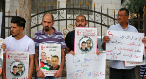 نشطاء يغلقون مقر الصليب الأحمر في البيرة ويطالبون بالانتصار للأسرى