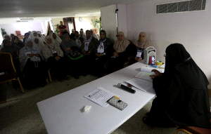 بهمّة عالية وكخليّة نحل، تعمل ثلاث داعيات من قطاع غزة على تقديم دروس دينية في الوعظ والإرشاد للنساء من الحجّاج .