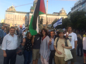 وقالت الناشطة يانا ريدفانوفا من حركة التضامن العالمي ISM: "جئنا إلى ساحة القديس فاتسلاف كي نعبر عن دعمنا لقرار وزارة التعليم والشباب والتربية البدنية بإسقاط وصف القدس كعاصمة لدولة الاحتلال الإسرائيلي من المنهاج المدرسي، وتعبيرا عن عدم موافقتنا على هذه الوقفة المستهجنة التي تستنكر القرار".