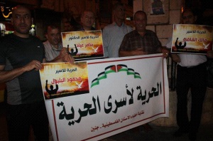 وحمل المشاركون في الاعتصام، الذي أقيم على دوار الشهيد أبو علي مصطفى وسط مدينة جنين، صور الأسير البلبول واليافطات والشعارات المنددة بسياسات الاحتلال بحق الأسرى، وأخرى تطالب بضرورة رفع ملف المعتقلين الإداريين للمحكمة الجنائية الدولية.