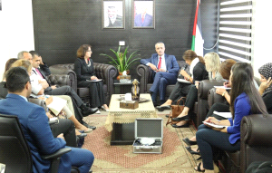 حيث أطلع وزير العدل الوفد الضيف على جهود الحكومة الفلسطينية، ومؤسسات قطاع العدالة لدعم المرأة الفلسطينية وحمايتها من كافة اشكال العنف والتمييز، مشيرا الى أن الحكومة بصدد إعداد مشروع قرار بقانون حماية الأسرة من العنف والذي بموجبه يتم تشكيل محكمة حماية الأسرة.
