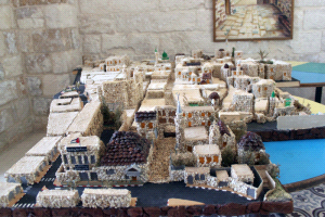 المساجد، والكنائس، والأزقة، وكافة المعالم الأثرية والتاريخية، في حارات البلدة القديمة السبع في نابلس، حاضرة في مجسم من الحصى داخل مبنى مركز موارد المجتمع التابع لبلدية نابلس، بهدف تشجيع السياحة للمدينة.