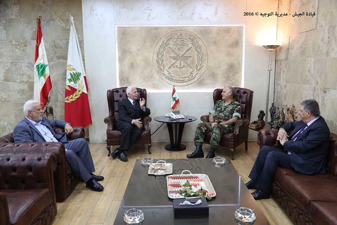 التقى عضو اللجنة المركزية لحركة فتح مفوض عام الساحة اللبنانية عزام الاحمد، قائد الجيش اللبناني العماد جان قهوجي بحضور سفير دولة فلسطين لدى الجمهورية اللبنانية اشرف دبور وامين سر حركة فتح وفصائل منظمة التحرير الفلسطينية فتحي ابو العردات.
