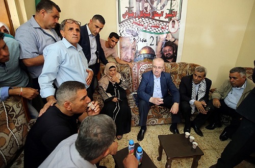 تفقد رئيس الوزراء رامي الحمد الله، اليوم السبت، في بلدة عزون بمحافظة قلقيلية، عائلة الأسير متوكل رضوان المحكوم بالسجن 22 عاما، قضى منها 14 عاما، ويعاني من وضع صحي خطير جراء الإهمال الطبي المتعمد من قبل إدارة سجون الاحتلال.
