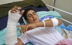 وصفت حالة الطفل بالخطيرة، حيث تبين وجود نزيف في الرئة، وتمت السيطرة عليه، فيما تم إجراء عملية في صباح اليوم التالي لمعالجة الكسور.