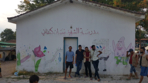 داخل كوخ صغير على الحدود اليونانية- المقدونية، صف واحد، وسبورة، وجذوع من الشجر طوعها اللاجئون، وجلهم من الفلسطينيين الذين شردهم الاحتلال الإسرائيلي عام 1948 مرة، وآلة الحرب الدائرة في سوريا ثانية، لتصبح فيما بعد مقاعد صفية يجلس عليها الأطفال، إلى جانب بعض التمديدات الكهربائية البسيطة، هكذا هي مدرسة الشهيد "غسان كنفاني"- كما وصفها وسام سباعنة.