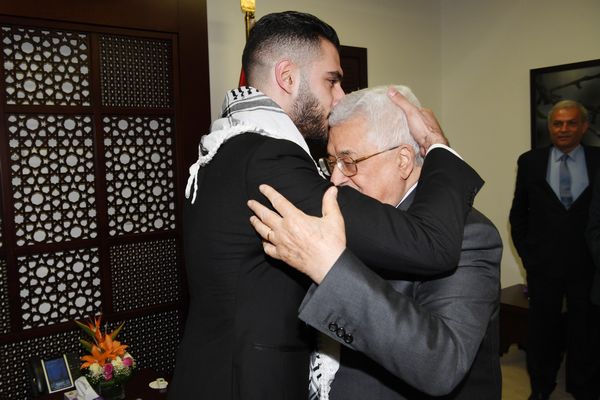 استقبل رئيس دولة فلسطين محمود عباس، اليوم السبت، بمقر الرئاسة في مدينة رام الله، الفنان الفلسطيني الفائز بلقب "محبوب العرب" يعقوب شاهين.