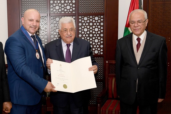 قلد رئيس دولة فلسطين محمود عباس، اليوم الثلاثاء، الفنان رفعت الاسدي، ميدالية الاستحقاق والتميز"الذهبية".