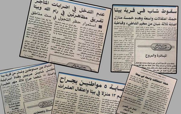 وأضاف الراوي: كانت هناك لجان للسهر على البلدة، وهي ما تعرف بالقوة –المجموعات- الضاربة، وكانت الحارة الفوقا لبيتا هي قلعة المواجهات لارتفاعها وقدم بيوتها وإطلالتها على البلدة، وتعتبر البلدة القديمة لبيتا، ومن مسجدها القديم كانت تُتلى بيانات القيادة الموحدة للانتفاضة، وبيتا بقيت طيلة سنوات الانتفاضة الأولى وحتى بعد قيام السلطة الوطنية وحتى اليوم، موقعا ساخنا ومتقدما في المواجهة مع الاحتلال ومستوطنيه.