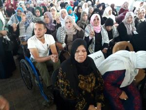جلست "أم ضياء"، التي تجاوزت العقد السادس من عمرها، مرتدية ثوبها الفلسطيني المطرز وطرحتها السوداء المعتادة، ومن حولها أمهات وأخوات وشقيقات الأسرى اللواتي يشاركنها جميع فعاليات التضامن مع الأسرى في شتى انحاء القطاع.